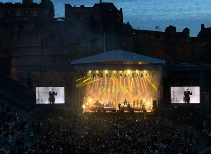 On an unusually sunny evening in Edinburgh, over 8,000 fans flocked to Edinburgh Castle’s esplanade where they were treated to a night full of musical madness, brought to them by Madness themselves. Supporting them that night were alternative and indie band Kid Kapichi. While I didn’t catch their set this time around, their mottos and messages behind their anthemic sound is perfect for fans of Madness and beyond.